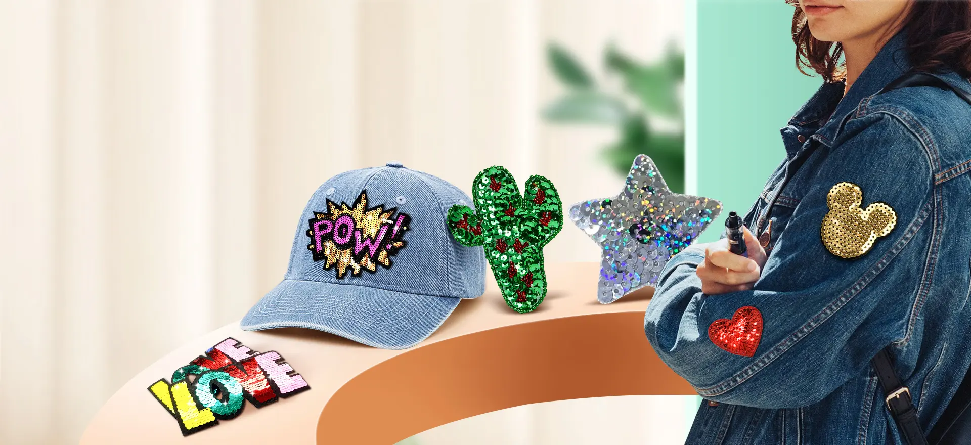 Experience the effect of sequin patches on clothes